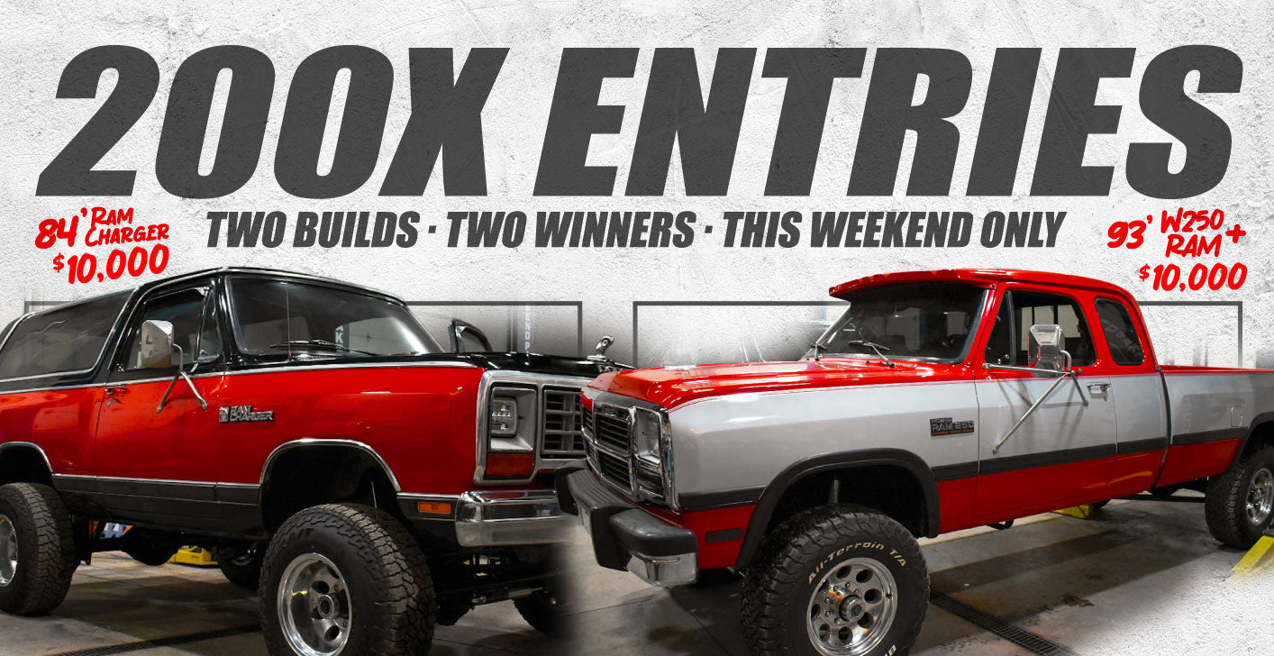 We are building Two Trucks for you! All you have to do is order your parts like normal and your entered to win! Every dollar spent gives you 200X Entries!