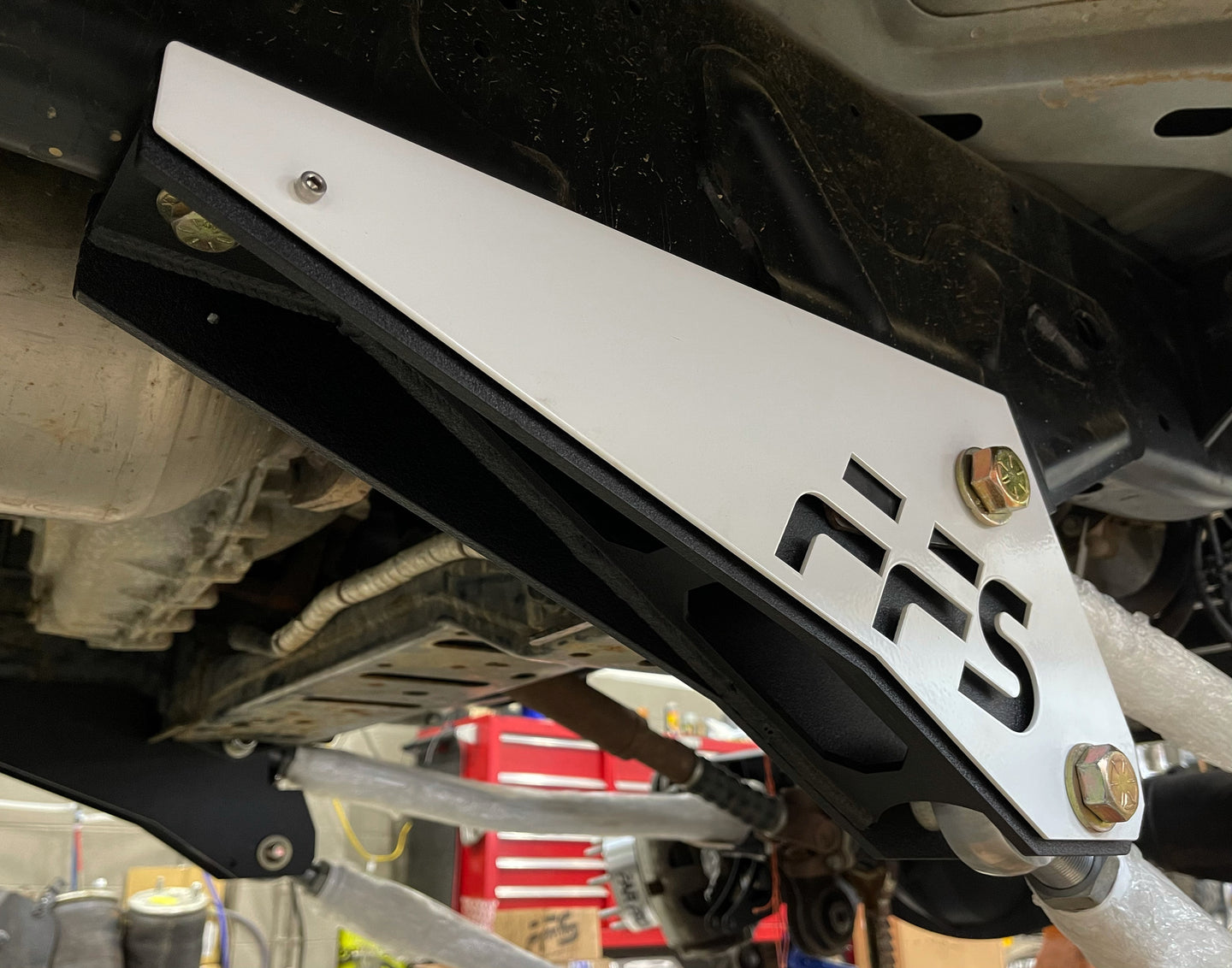 They are a key component to our long travel air system, but work great on a static leveled or lifted truck. Bolts in stock pivot bolt and other existing frame holes for a no-mod install. Longest arms possible in this location. The included FFS overlay plates, now in standard double overlay, clean up and even out the otherwise mismatched original frame brackets really cleaning up those lines.