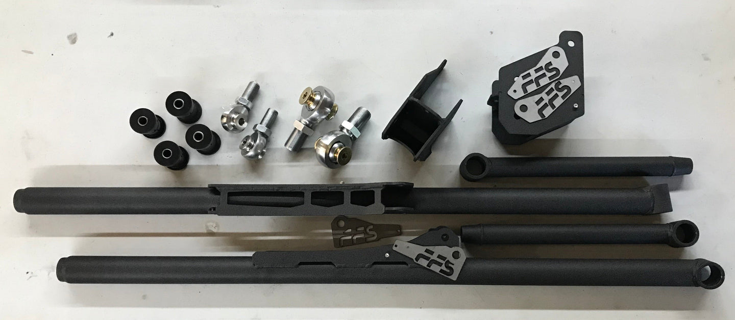 FFS Bolt on radius long arm control arms for your 03-12/13 2500 or 3500 4x4 or 1500 megacab. Replaces your short 4 control arms. From leveled to 8” of lift (higher available). At a whopping 50+” long, these not only locate your front axle very well like a radius arm does, but the plentiful length also minimizes any drawback of a radius arm too.
