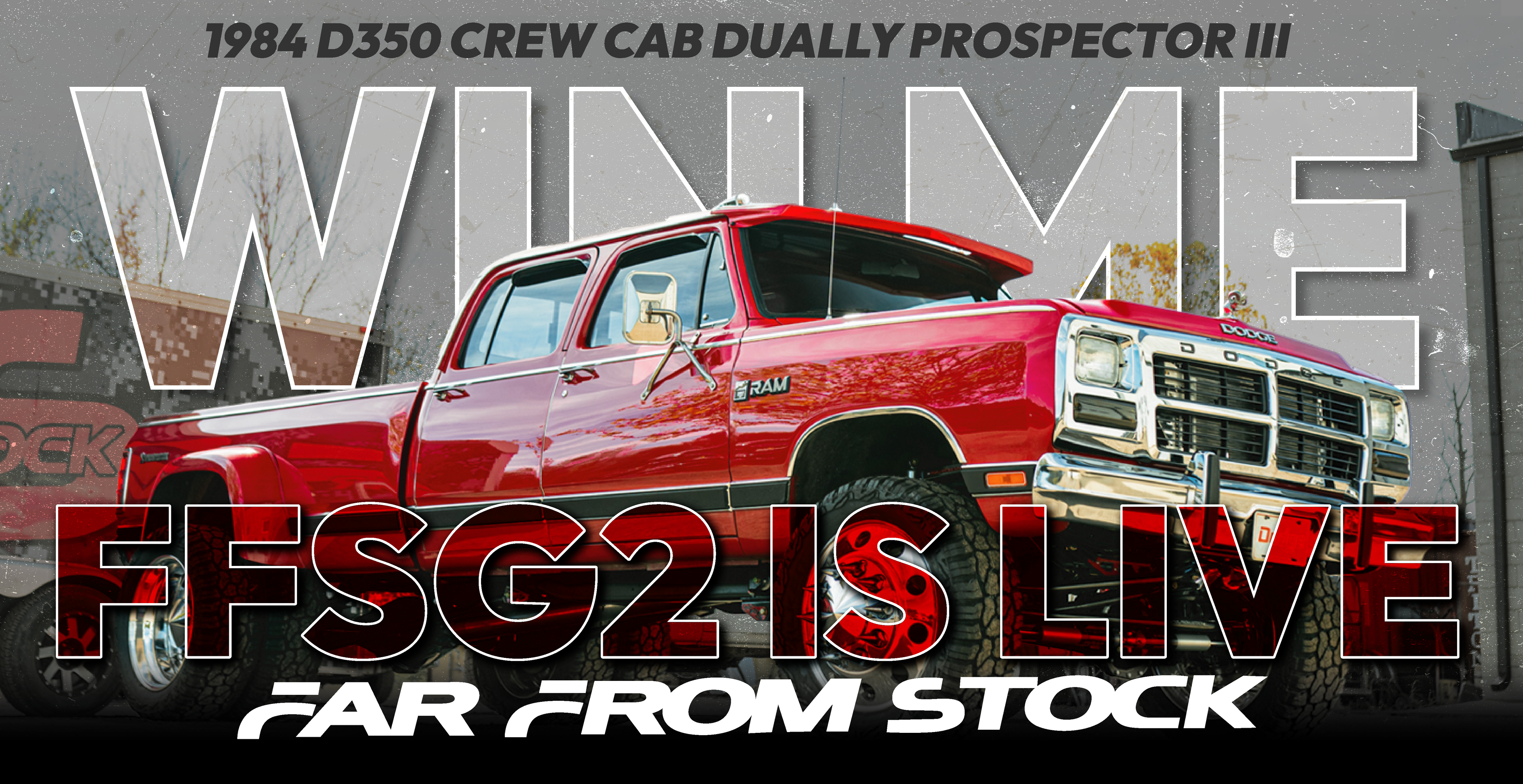 The FFSG2 Giveaway runs from October 5th through December 5th at midnight. Every purchase earns entries toward a fully built 1984 Dodge D350 4×4 with a Cummins swap and $10,000 cash. Weekly multipliers boost your odds, and winners are chosen at random once the giveaway ends.