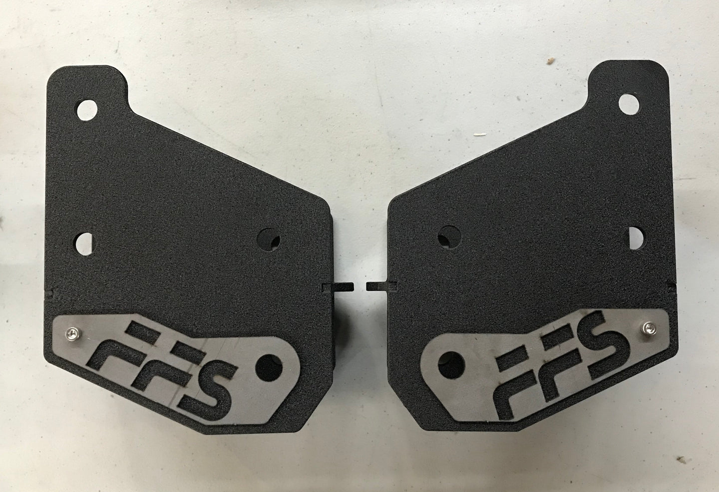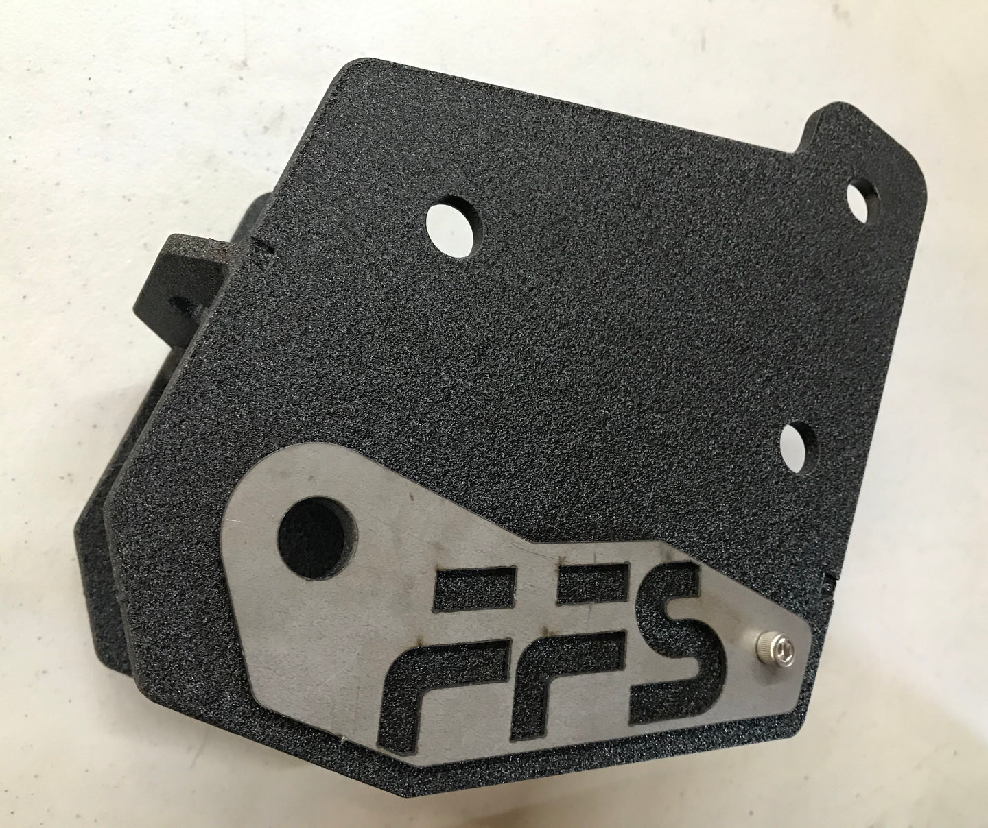 This is a frame mount bracket set to bolt traction bars to your 3rd or 4th gen ram at the frame end with mounting hardware. This is the frame mount bracket we originally made for the front long arm radius kit for an 03-13 ram. It was designed to work on the rear too to be a mirror image of the front, but works well on its own too. Does require drilling. It’s too tight near the fuel tank and exhaust to drill from the back side so an option is to drop them, but we always make due at the shop by drilling both sets of holes from the outside even though it’s a bit tricky. Available in black wrinkle powder as pictured with a raw badge for you to customize yourself or all raw steel.