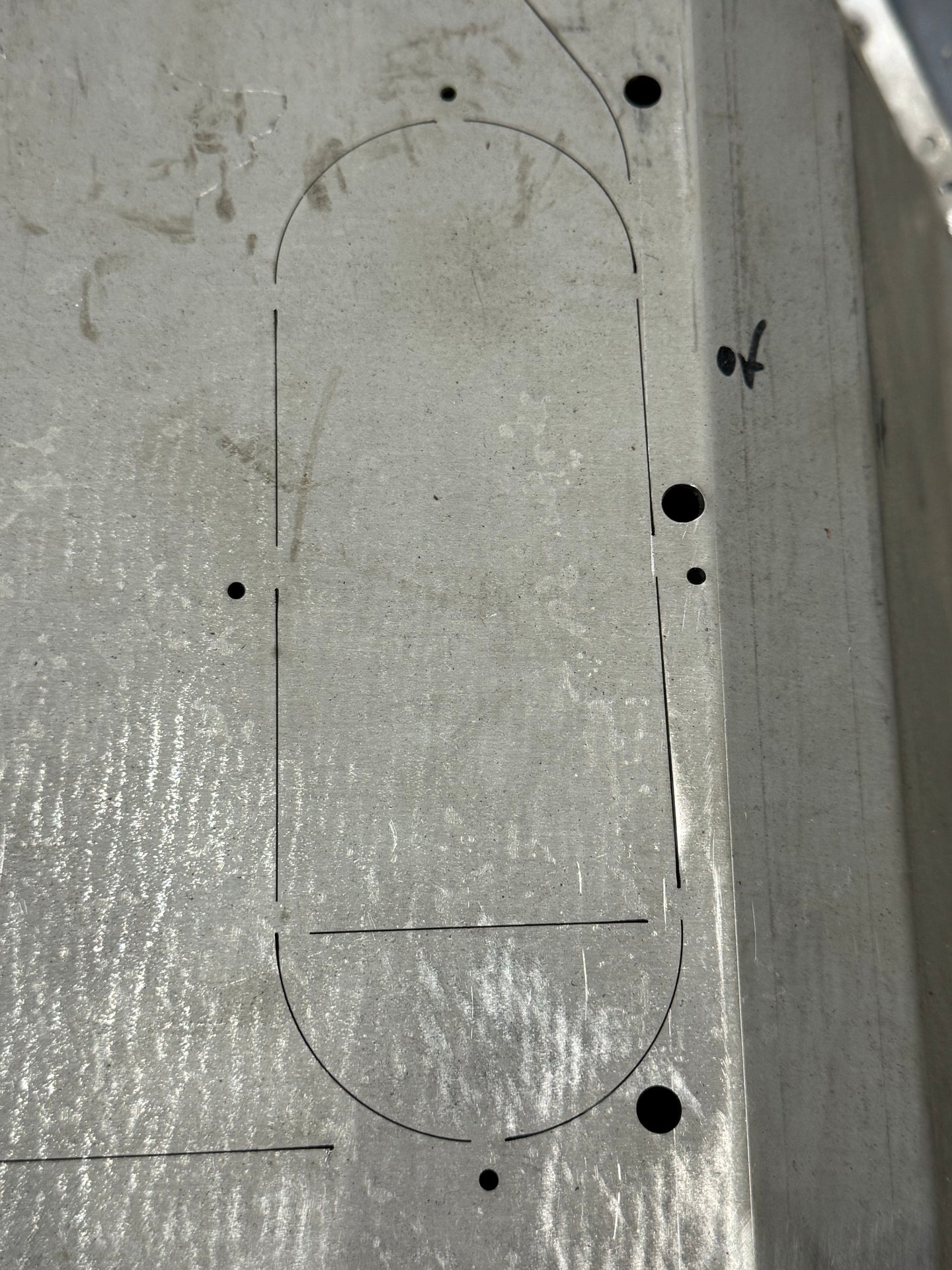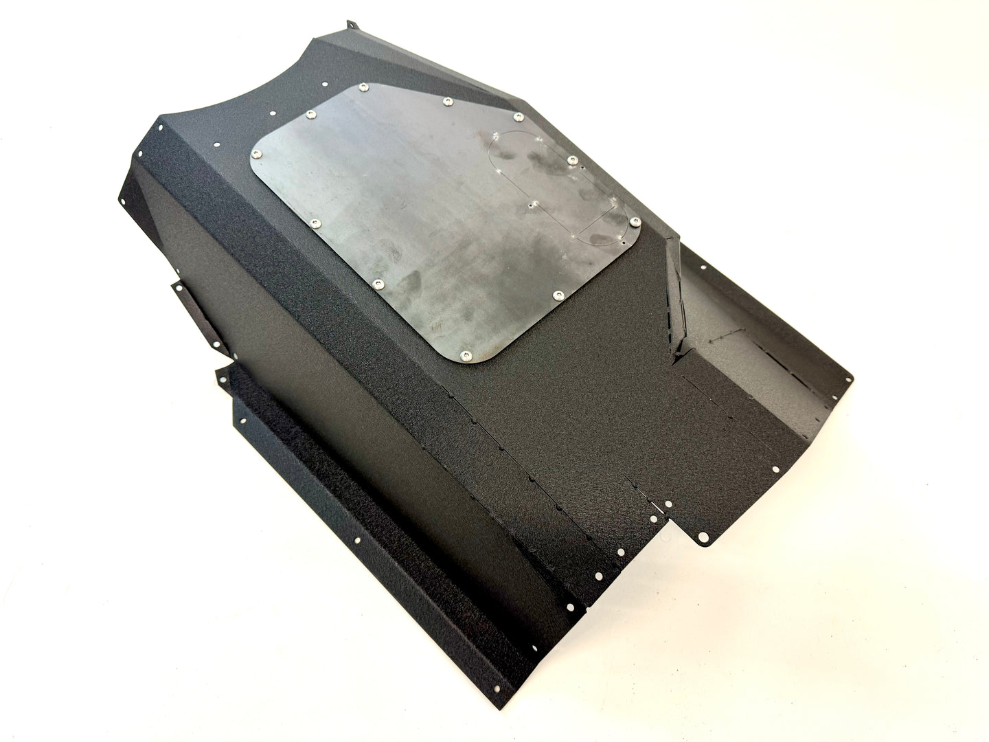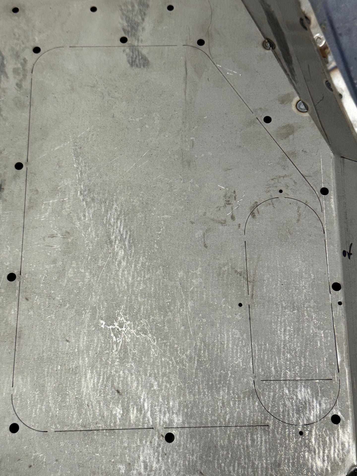 Another available option is to just order it with the separate top plate pre cut out and threaded inserts installed. This would give you the whole 4x4 floor tunnel section and would allow you to cut any manual transmission hole needed and have a bolt in removable inspection/access plate, it also includes the pre cut lines for the transfer case shifter cutout option.