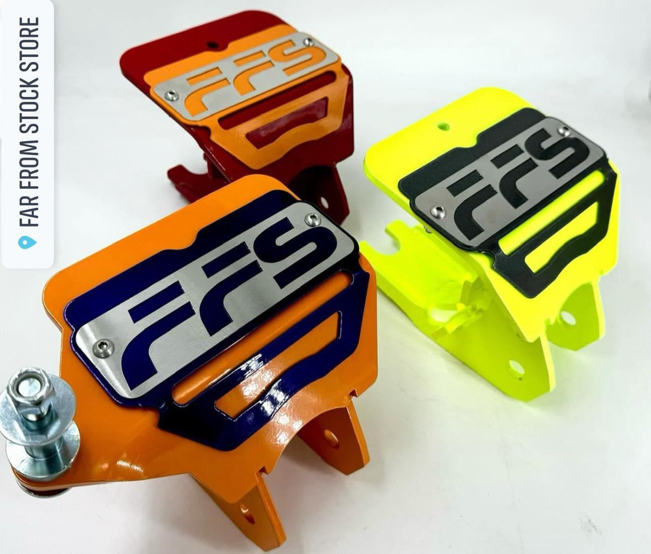 First it replaces your original bottom U-bolt plate that incorporates the shock mount on the bottom of your axle, providing a single bracket to mount both the shock and the traction bar, and it’s bolt on. This is the main difference from our traditional kit. This mod includes a swap to a traditional round bottom U-bolt with the threads up and plate on top for a nice clean look. Includes a stainless FFS badge on the rear surface and an overlay plate for triple layer color. This is designed for a dana 70 with a 3.5” diameter tube. Can be for a different size tube on request (like a dana 80 if you swapped it).