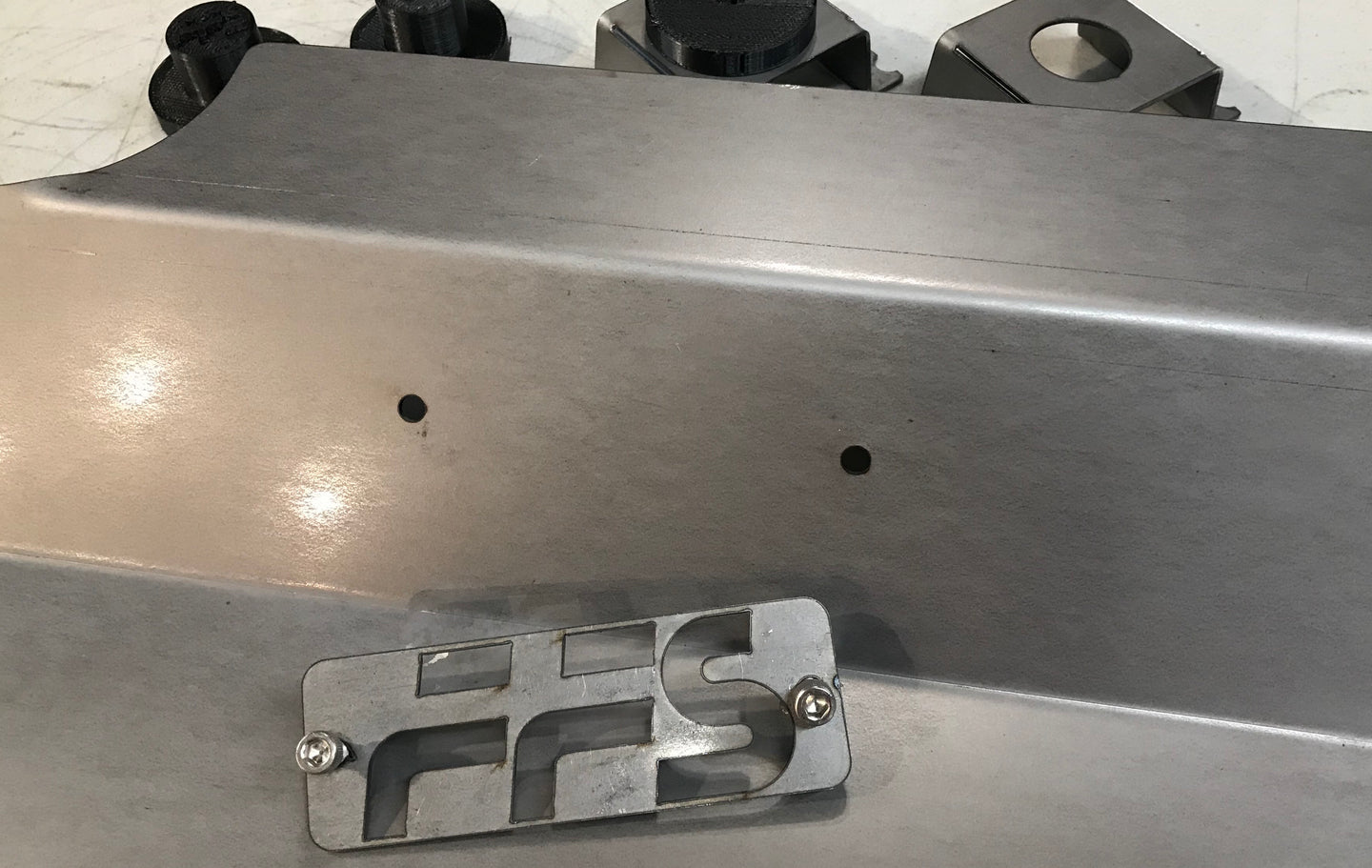One piece radiator cover top plate is the mount for the upper radiator. (available in drop down below with or without hood safety latch hole for those of you using our big intercooler kit, as the big intercooler eliminates the ability to use the stock hood safety catch).