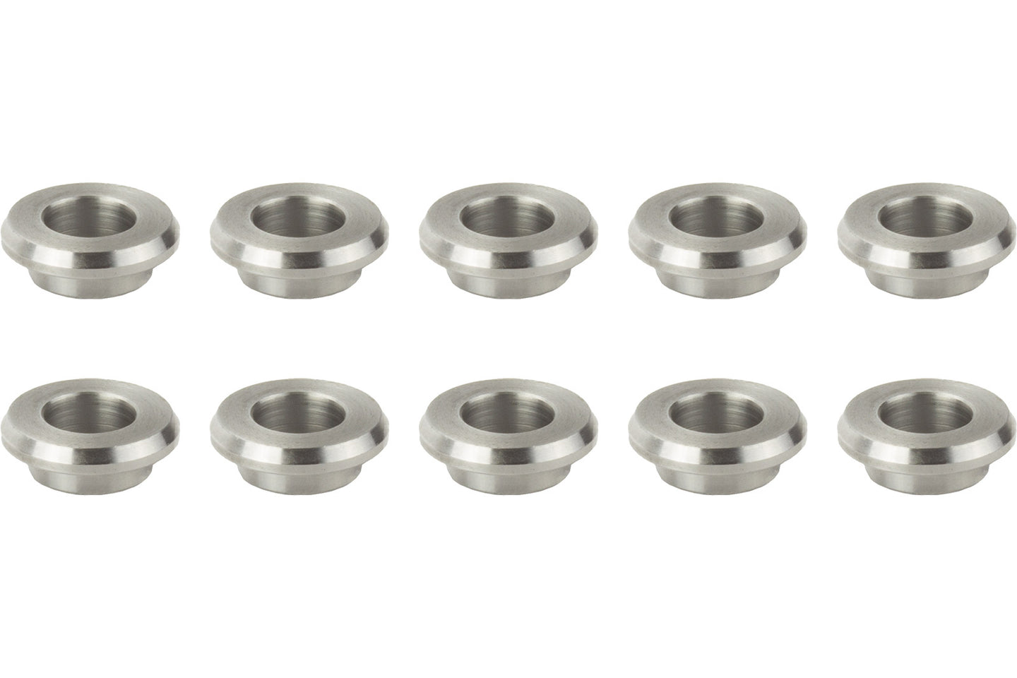 These are a new version of our weld washers. These are designed to fix a mounting hole that has be ovaled out. They are designed with 1/4" depth, as in the OD will press down 1/4" into the drilled hole. The drill bit size for each washer: