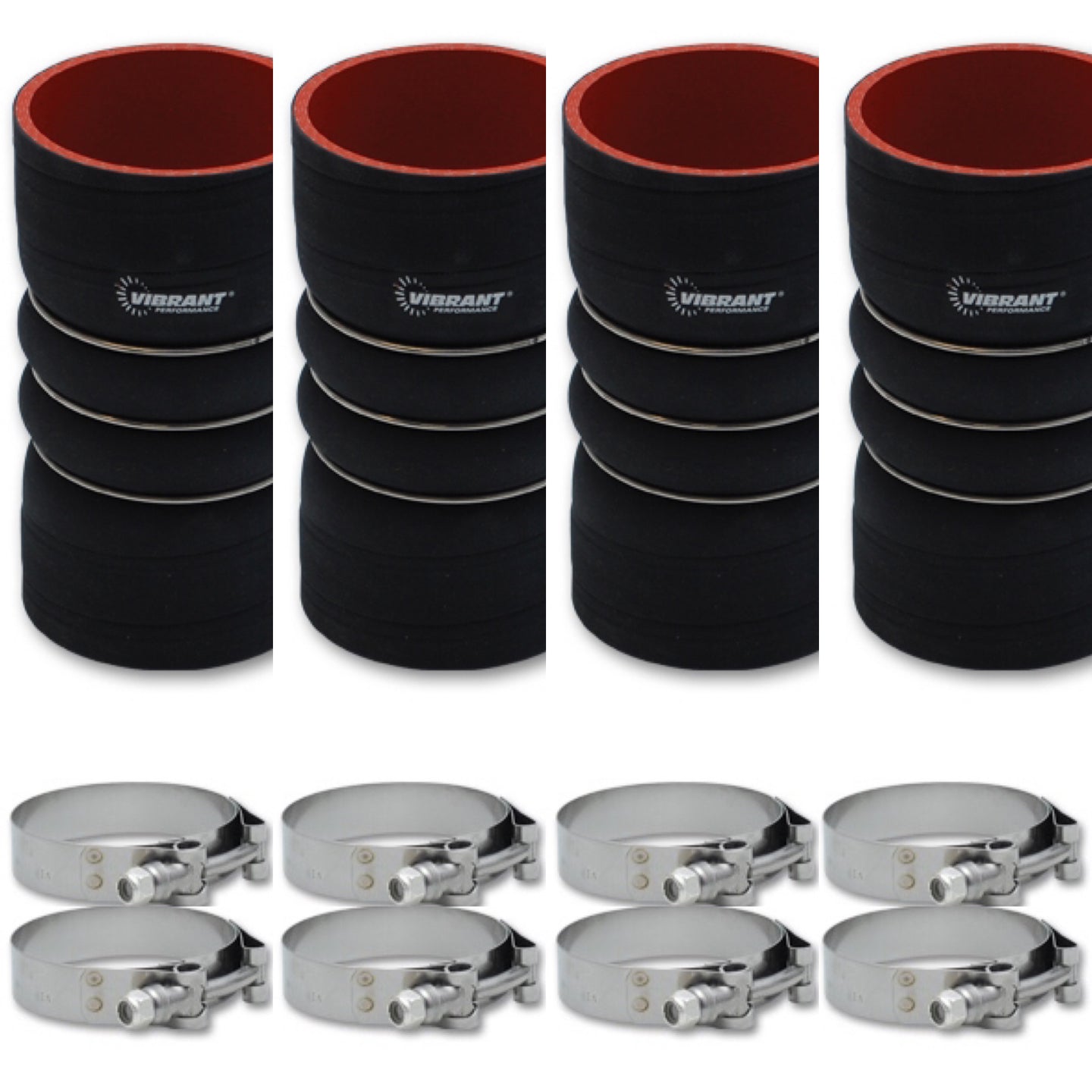 Long, heavy duty, flexible and reinforced charge air Intercooler boot set for your First Gen Cummins CAC Hose, 2.50" I.D. x 6.00" long - Black 4Ply Aramid Reinforced Silicone, Stainless Steel Rings from Vibrant. T304 Stainless Steel t-bolt clamps (Including Bolt and Lock Nut). Top quality replacements for you aging and discontinued boot set.