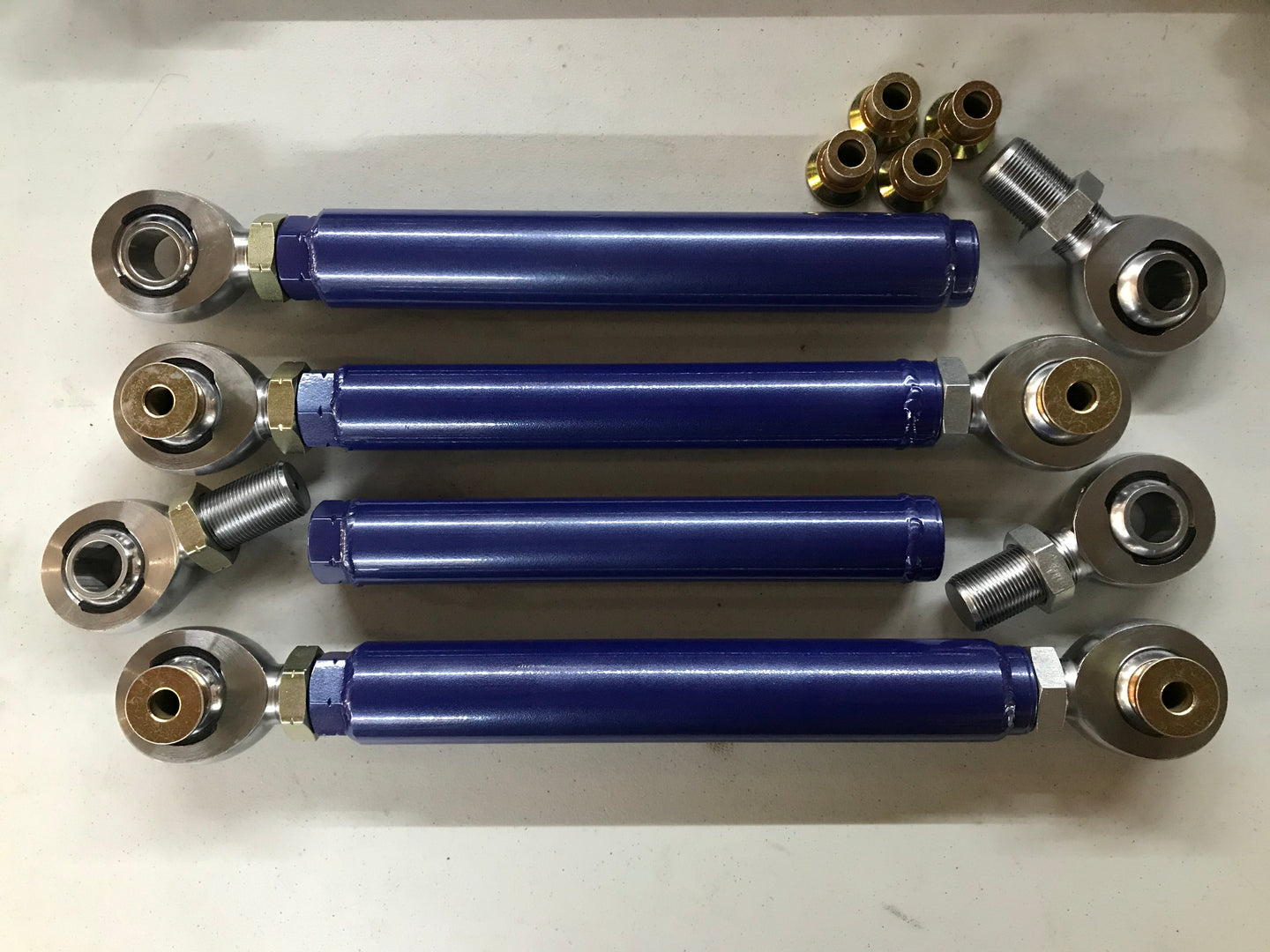 Adjustable from stock length and longer so that they can help add tire clearance at the back of the fender opening or extend your arms to make up for a lift or leveling kit. Single adjustable will easily go to +3/4” or even more, double adjustable can adjust up to +1.5” and beyond.