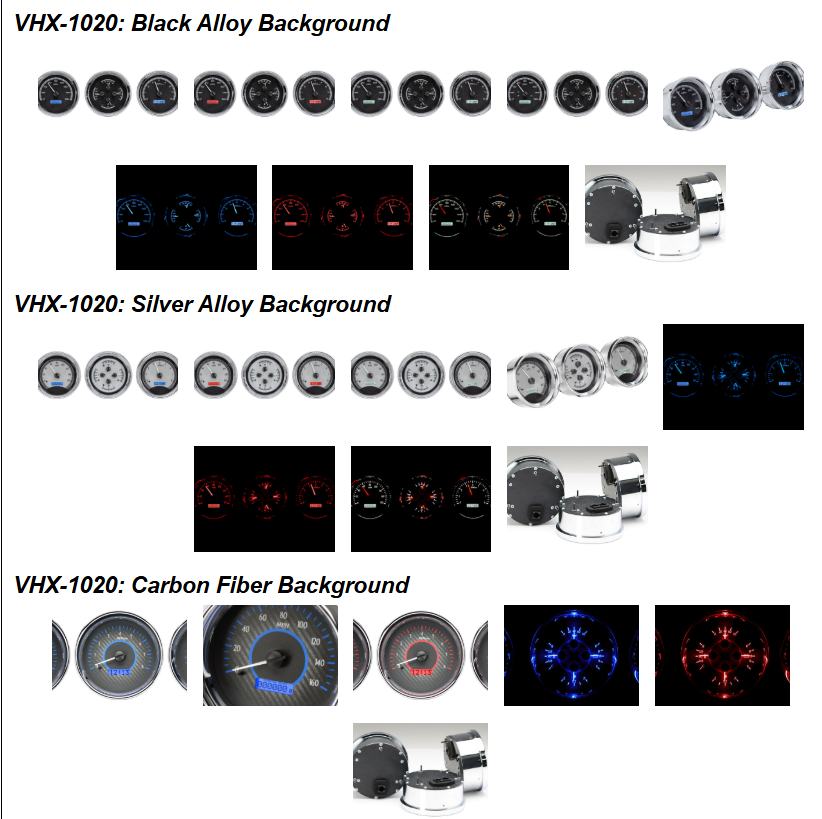 Fully lit needles, backlit faces, and highly visible LCD message centers are a few of the things that you can see which set the VHX Series apart from yesterday’s traditional approach to instrumentation. A few of the features which you don’t normally see are the micro-controlled precision stepper motors, solid state sensors for unparalleled accuracy, and user-customizable display feedback, all supported by an unrivaled limited lifetime warranty which has become the standard for Dakota Digital instrumentation systems . Completely engineered and manufactured at our facility in Sioux Falls, South Dakota, the VHX Series has completely revolutionized the instrumentation industry!