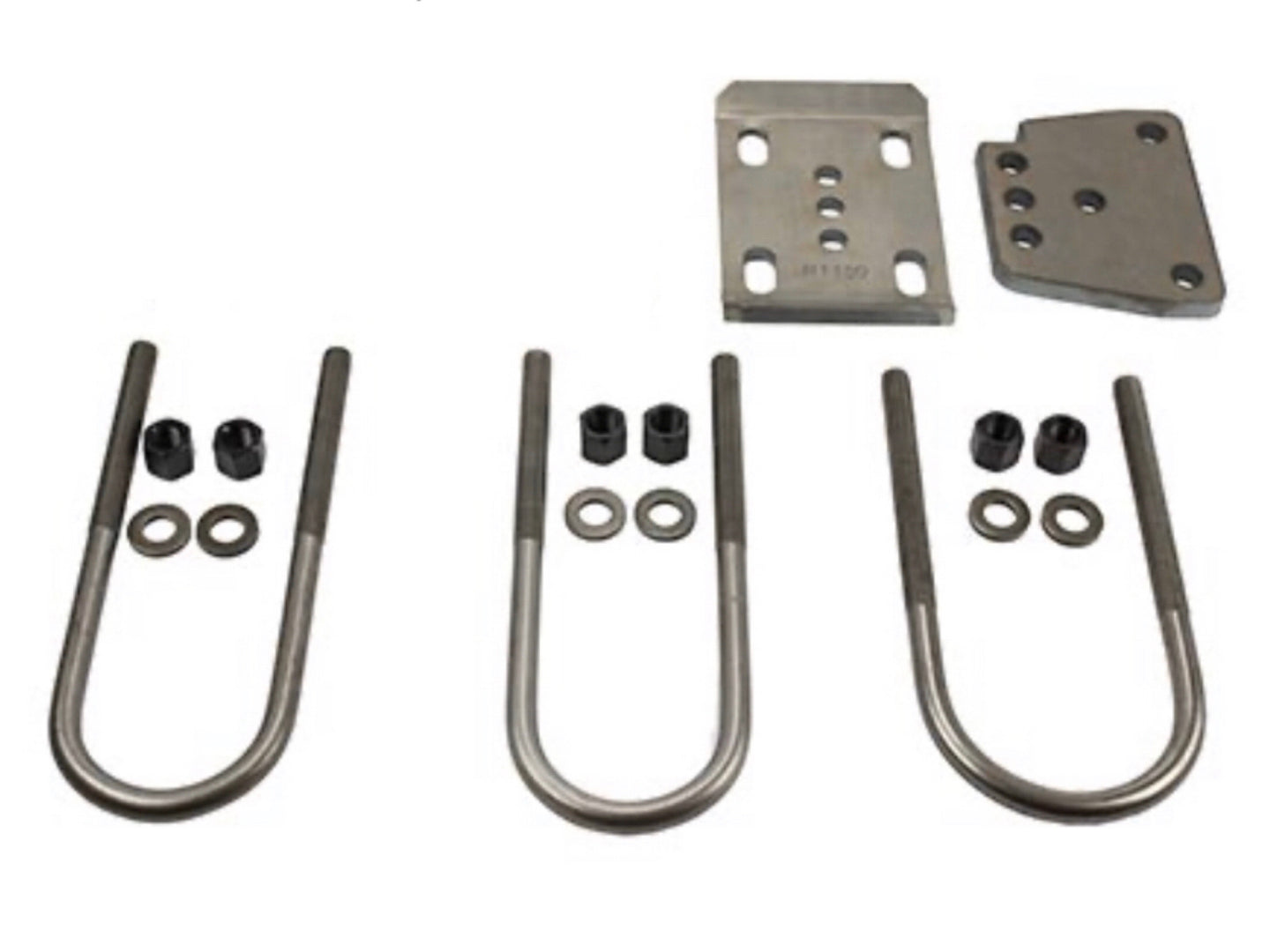 Complete kit includes 3 U-bolts w nuts and washers, 2 studs w nuts and washers for the cast case, top passenger top plate and driver adjustable top plate.