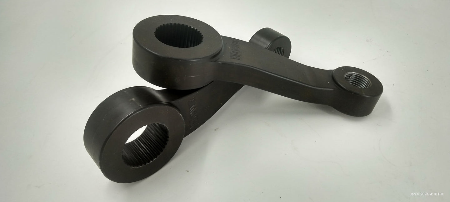 Dropped pitman arm machined for heim joint use. 3/4” fine thread. Saginaw box
