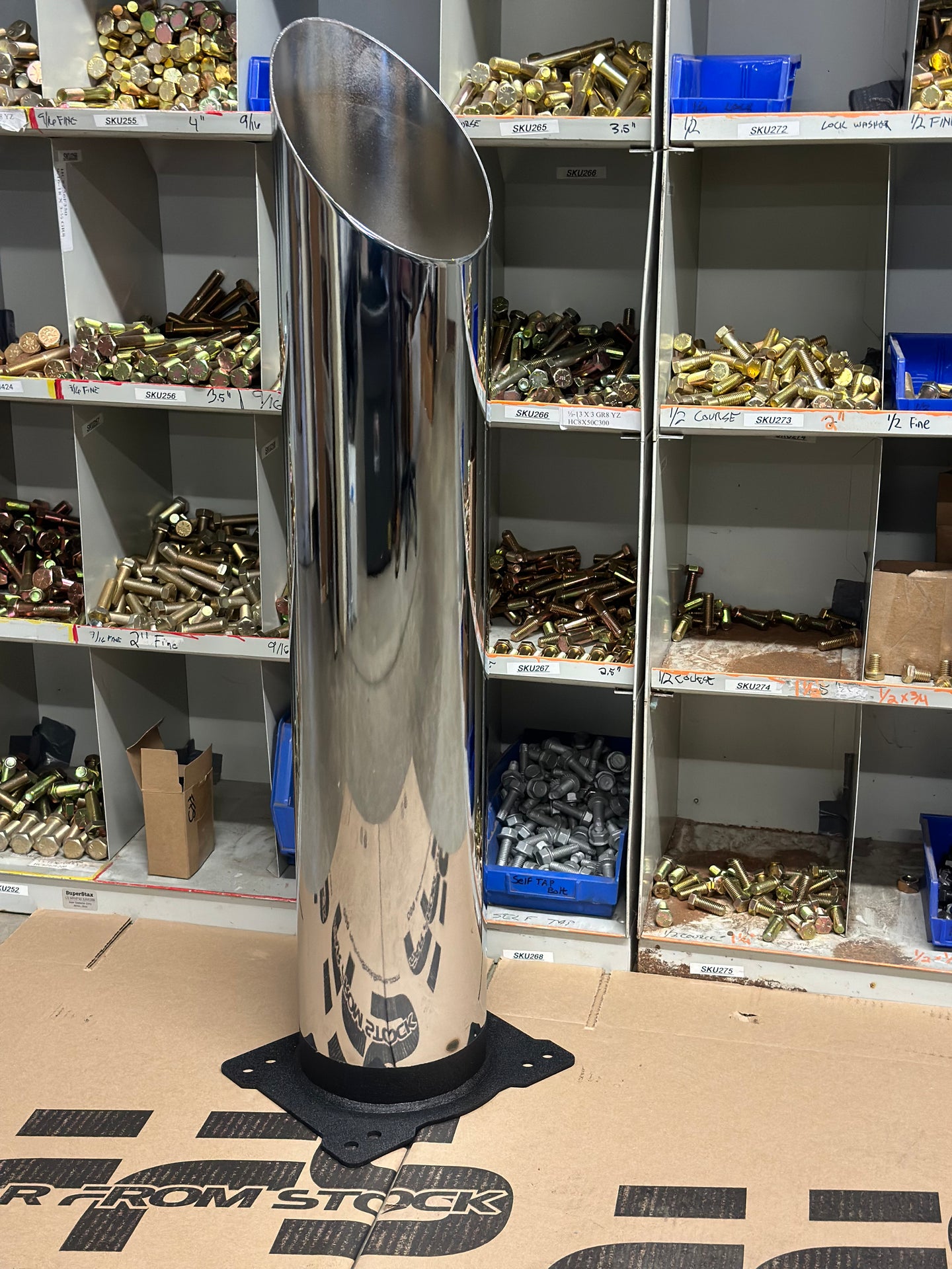 It is our opinion that 7" is the best size, not too spindly and not bordering on a trash can, just right for that clean but mean FarFromStock look. But we also offer 8”. Stacks are 39” tall.